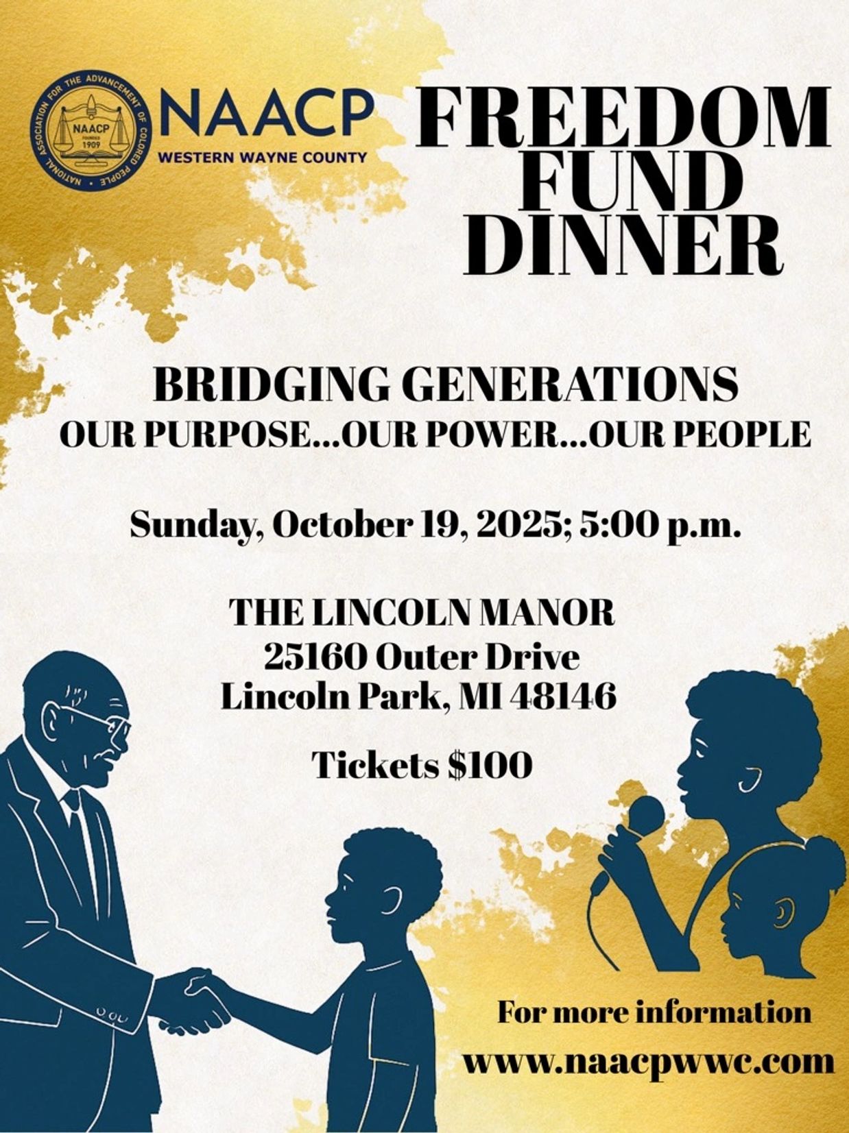 THE WESTERN WAYNE COUNTY NAACP IS EXCITED TO ANNOUNCE THAT TICKETS FOR THE 2025 FREEDOM FUND DINNER ARE AVAILABLE. CHECK OUT THE FEATURED PRODUCTS BELOW TO PURCHASE TICKETS, SPONSORSHIP PACKAGES, AND/OR ADVERTISEMENTS.